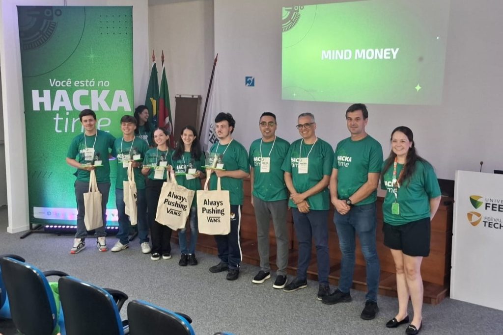 Os estudantes Ana Sofia Knob (Ildefonso Pinto), Anelise Schmitt Rodrigues (Escola 31 de Janeiro), Arthur Monteiro Schulemburg (Tiradentes), Arthur Scherer da Silva (Tiradentes) e Gustavo Menezes Lauda (31 de Janeiro) foram os vencedores do Hackatime Sicredi, realizado na sexta-feira (27) e sábado (28), no Feevale Techpark, em Campo Bom. Como prêmio, o grupo apresentará seu projeto “Mind Money”, um aplicativo para Educação Financeira, no Campo Bom Expo.Summit, que acontecerá nos dias 20 e 21 de maio, e também desenvolverá sua proposta no Feevale Techpark.